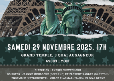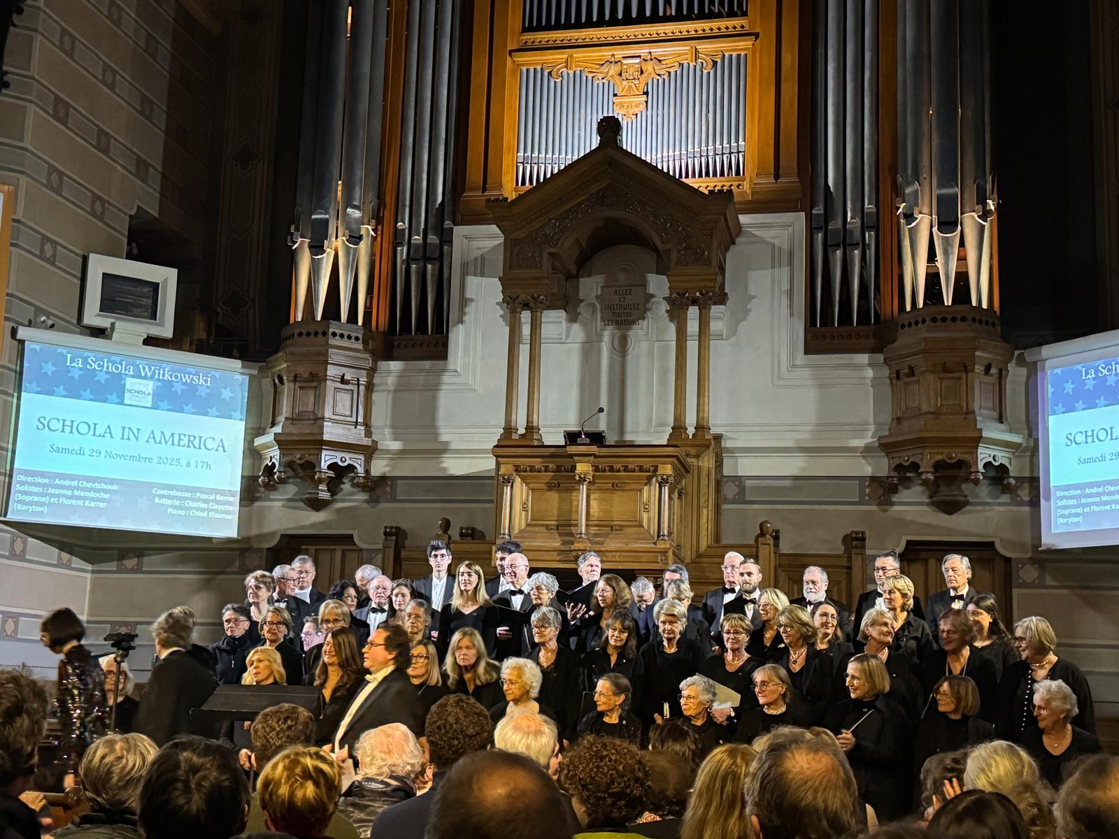 GALERIE Schola Witkowski Concert "SCHOLA IN AMERICA" 29-11-2025 Gardons contact ! " Nos Répétitions : Les lundi soirs de 20h à 22h15, Palais de la Mutualité 1 place Antonin Jutard – Lyon 3e — — — — — Contactez Nous